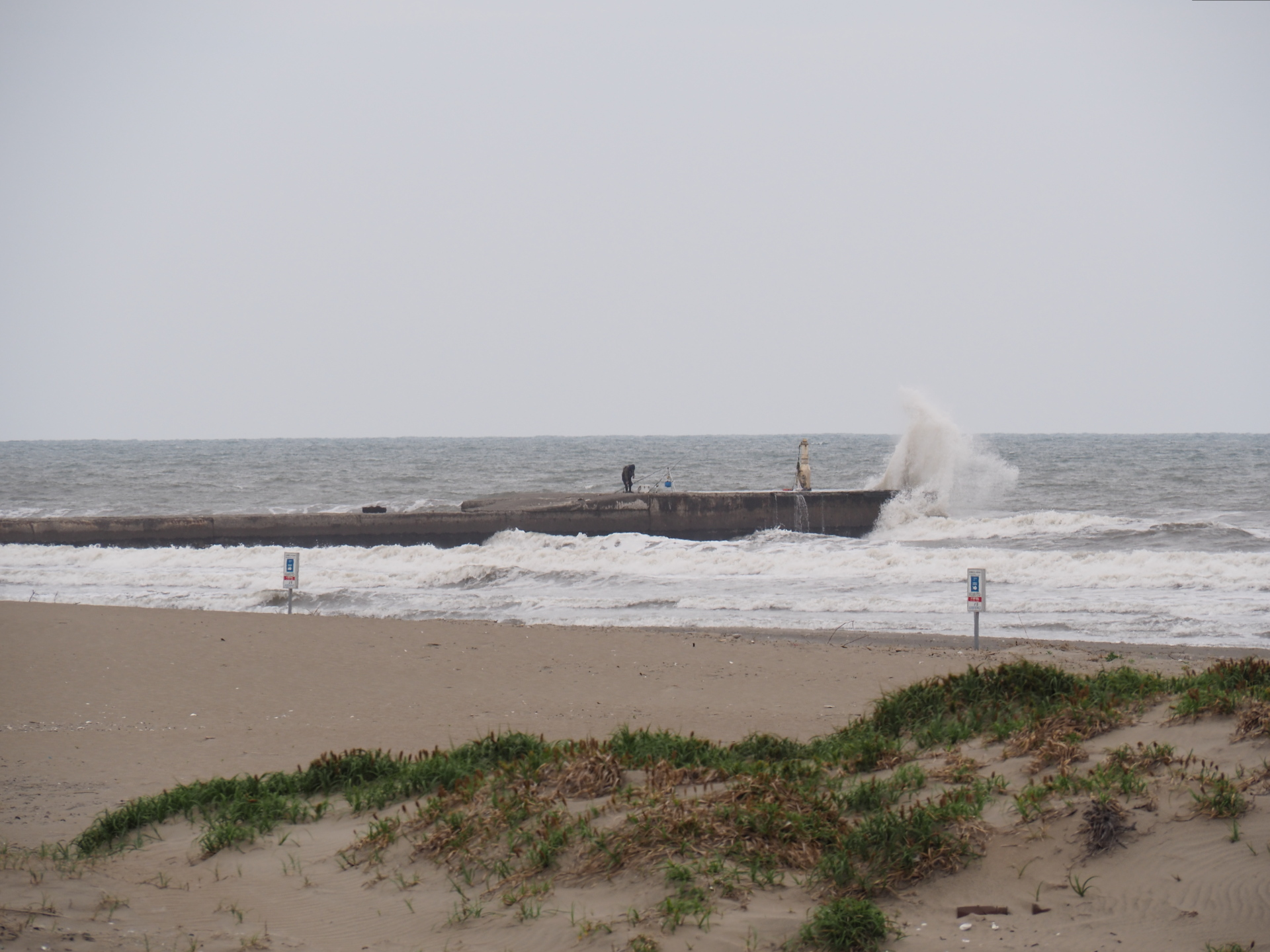 雨は上がったものの相変わらず曇り空で海はいつにも増して荒れまくり。