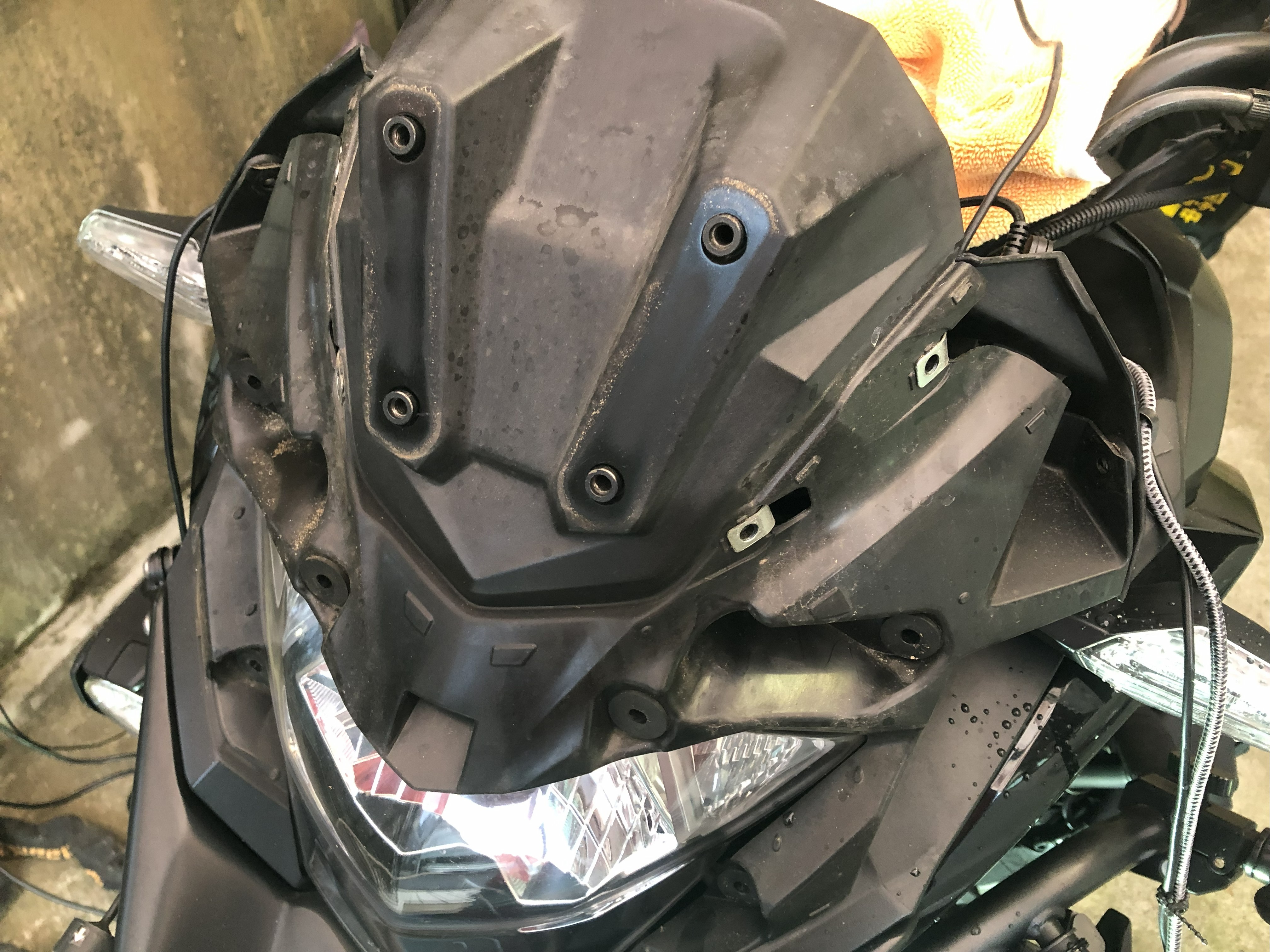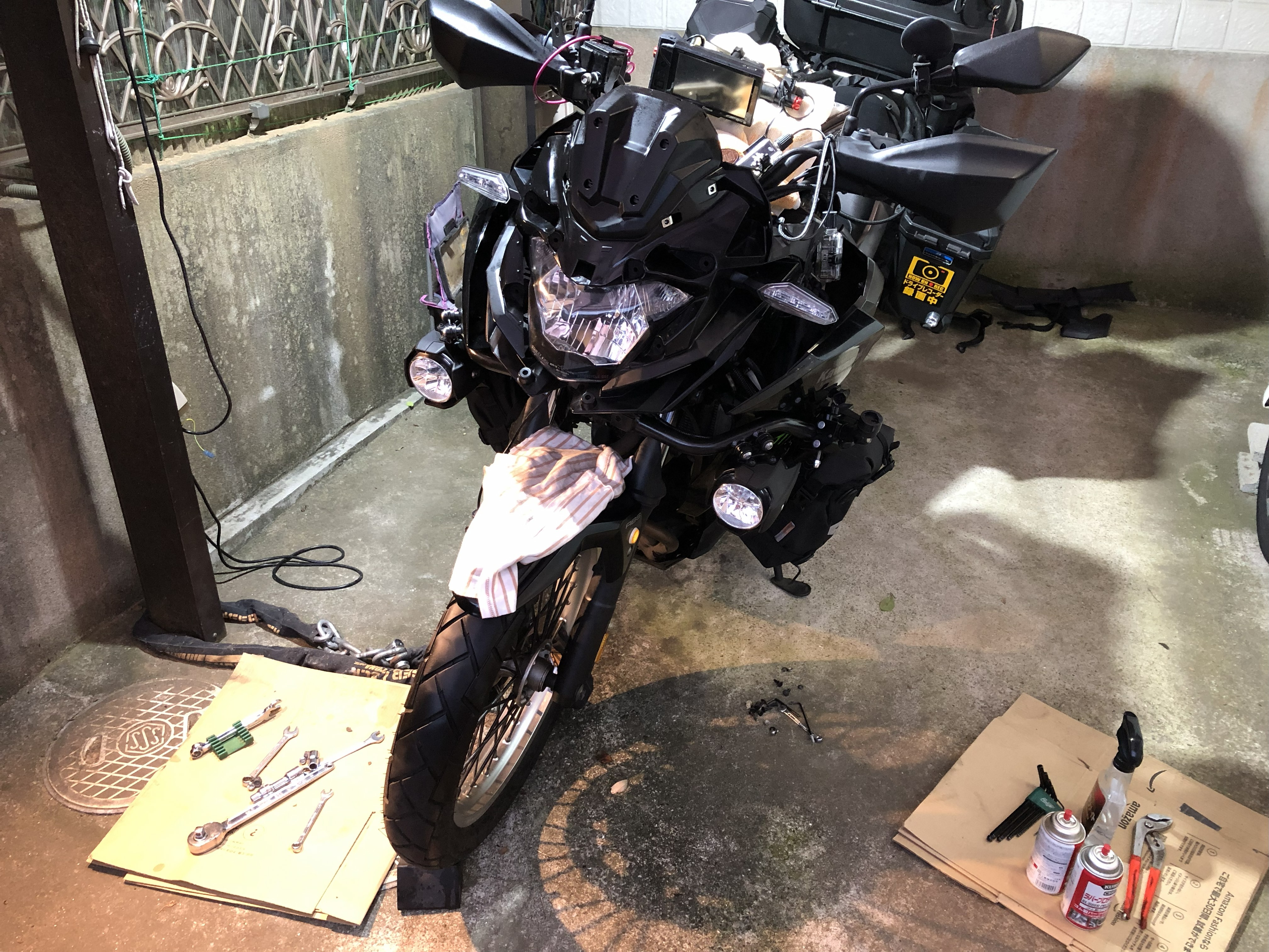 なにしろフロント回りのカウルを全部外さないと交換出来ないので…。>Versys-X