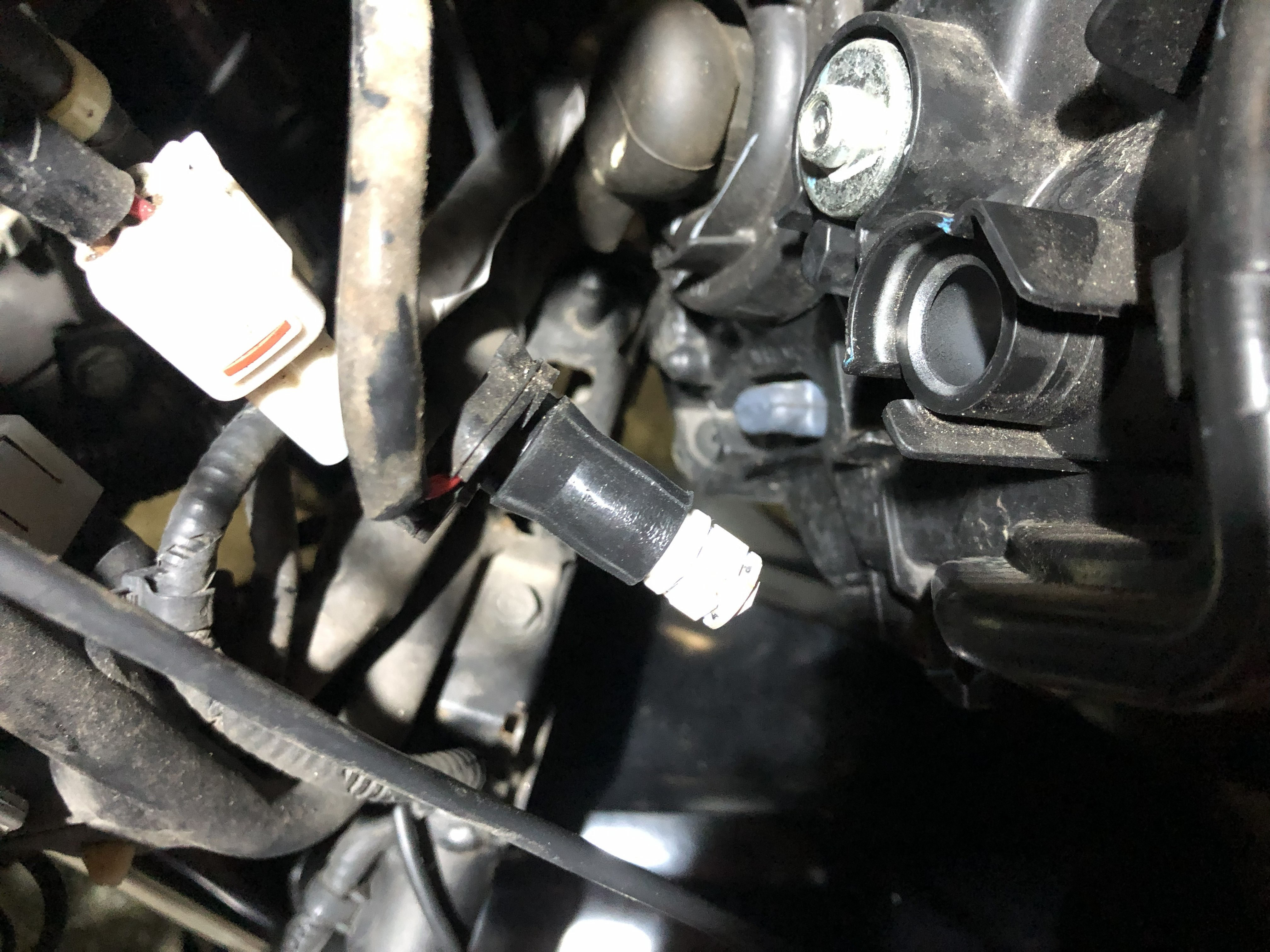 写真中央がバルブ、その右上の穴がポジションランプの差込口です。