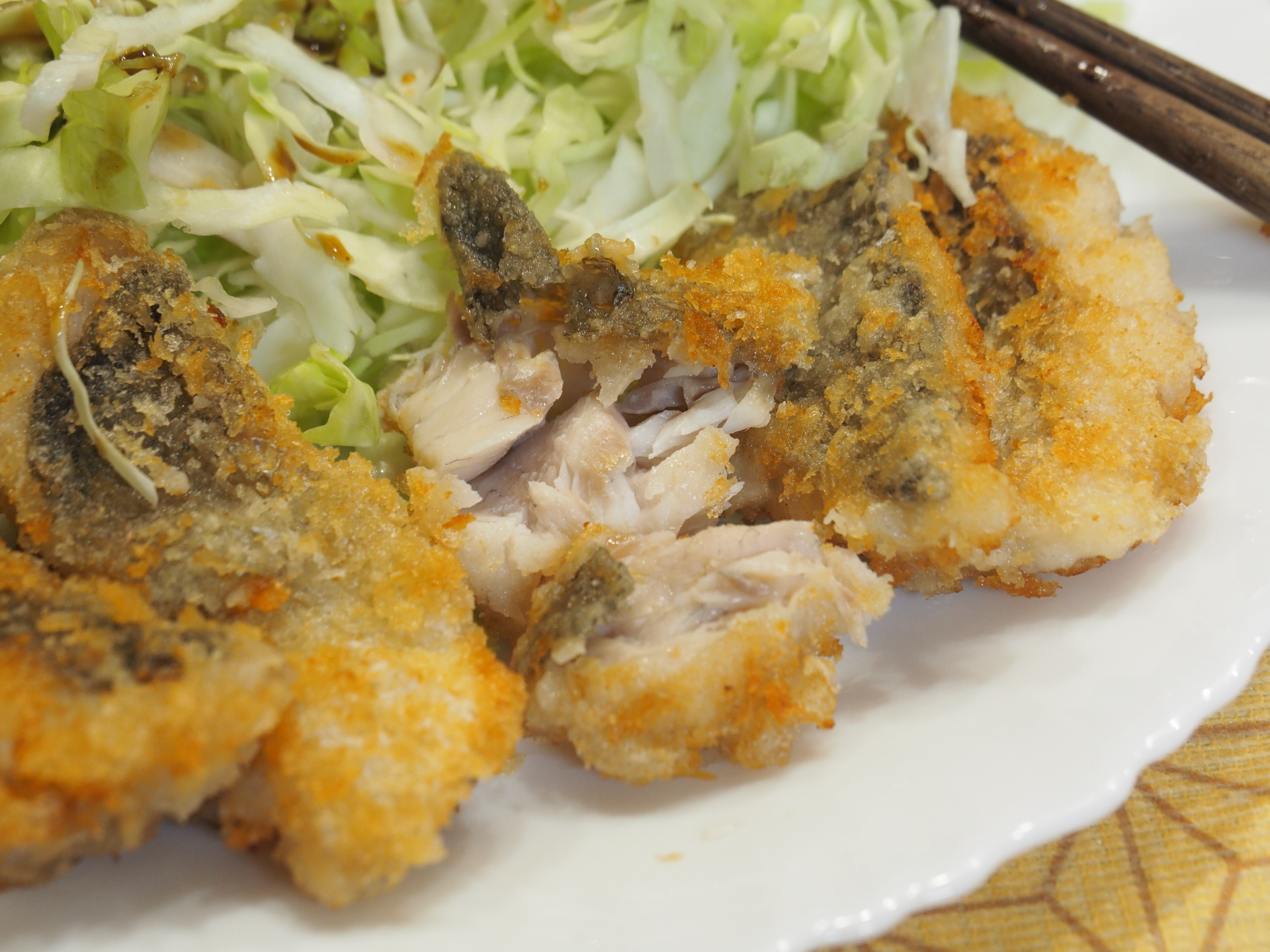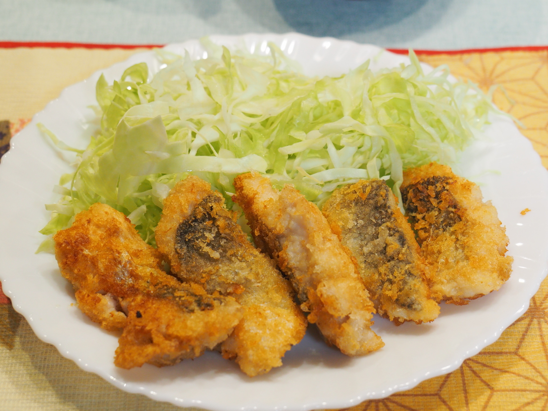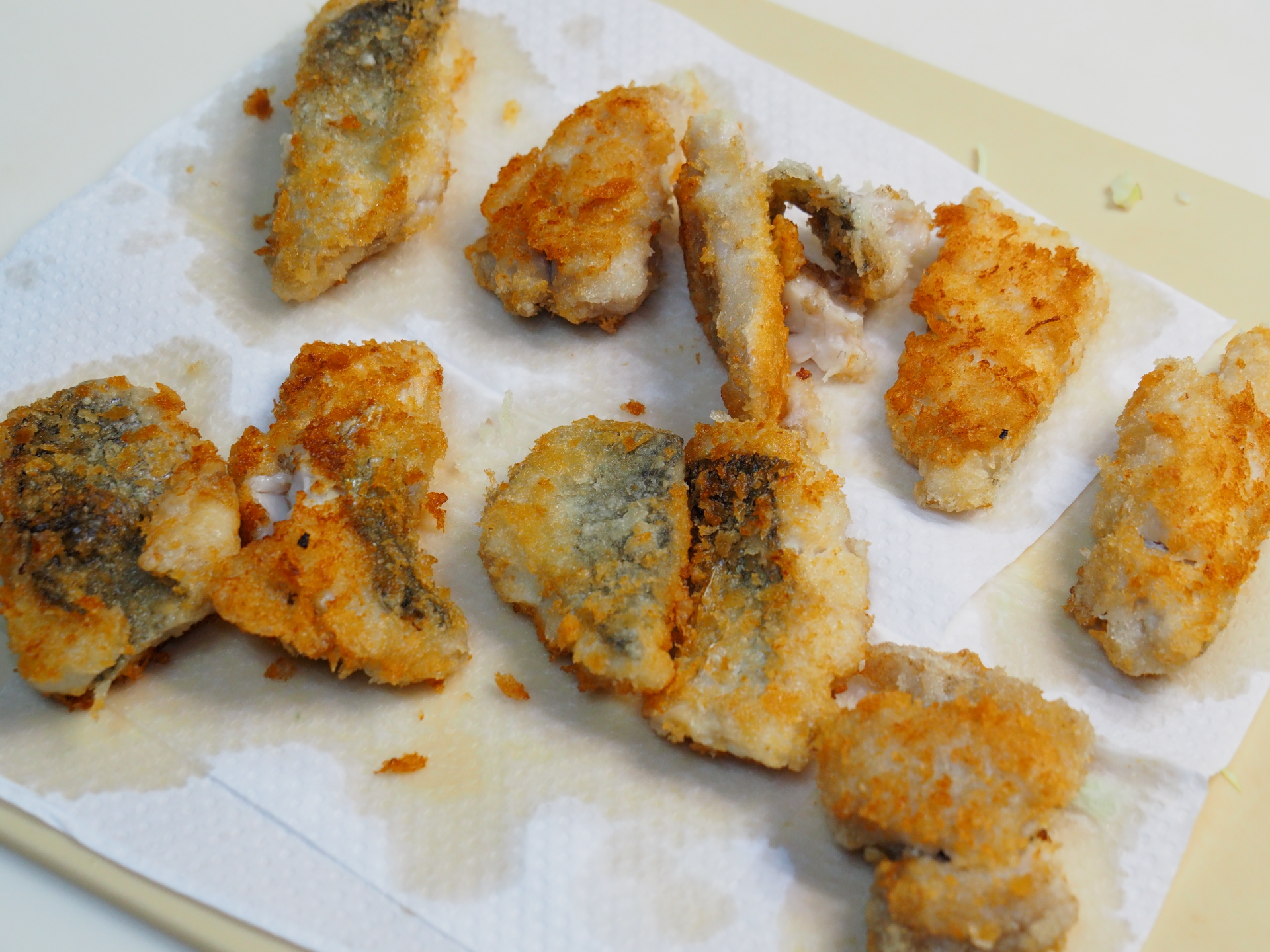 スズキは二枚に開いて小骨なども取り除き普通にフライにして食べました。
