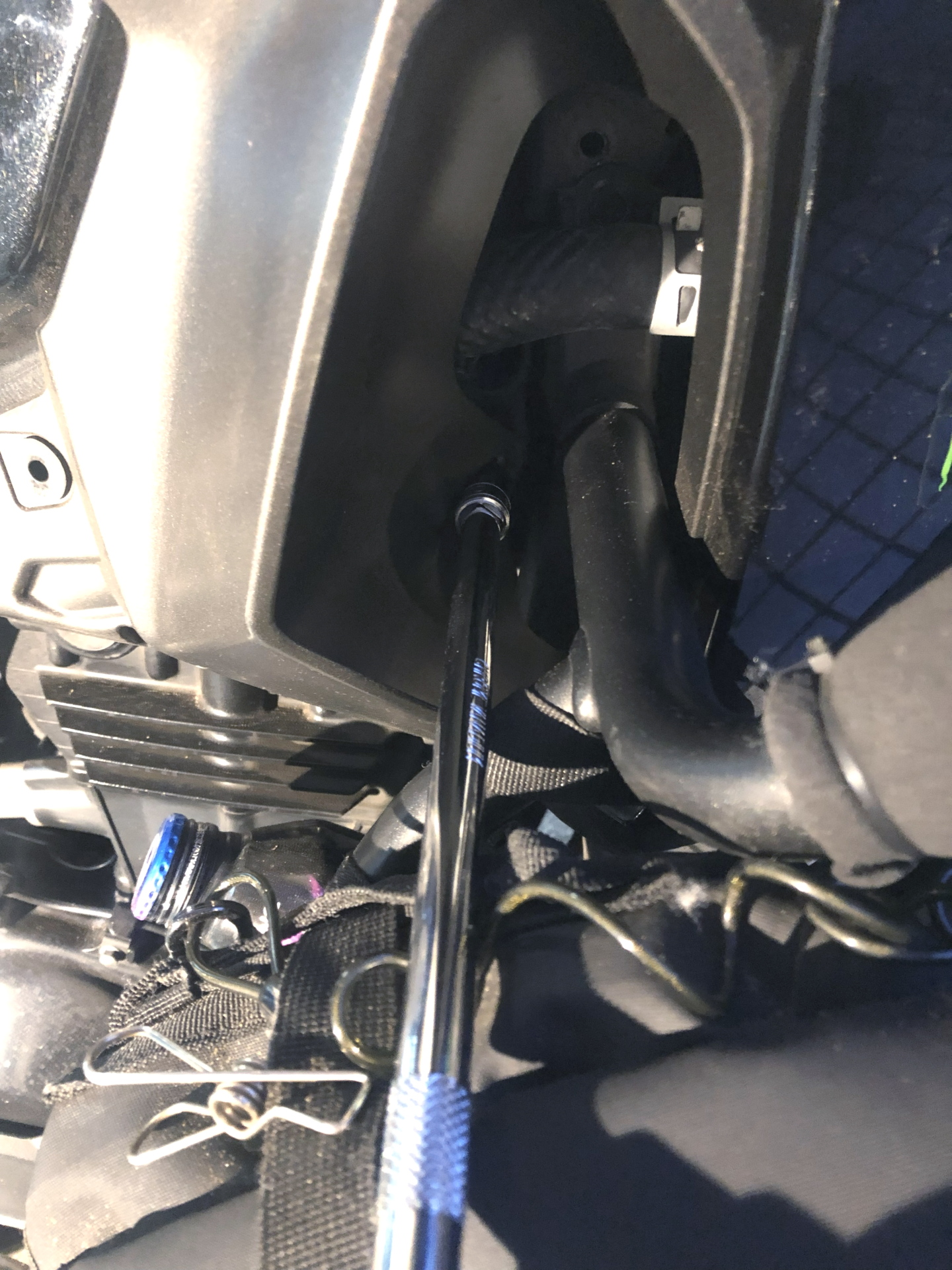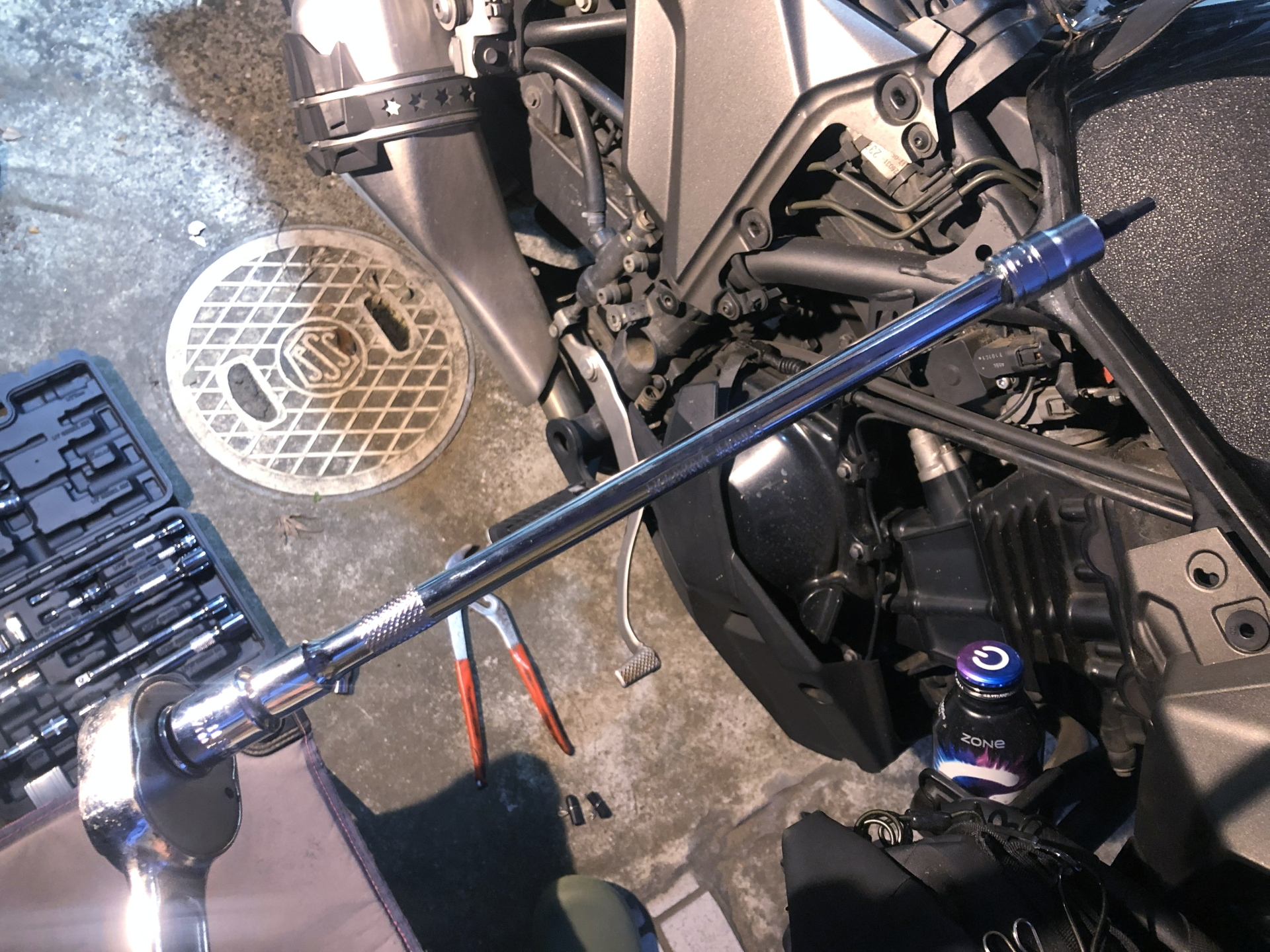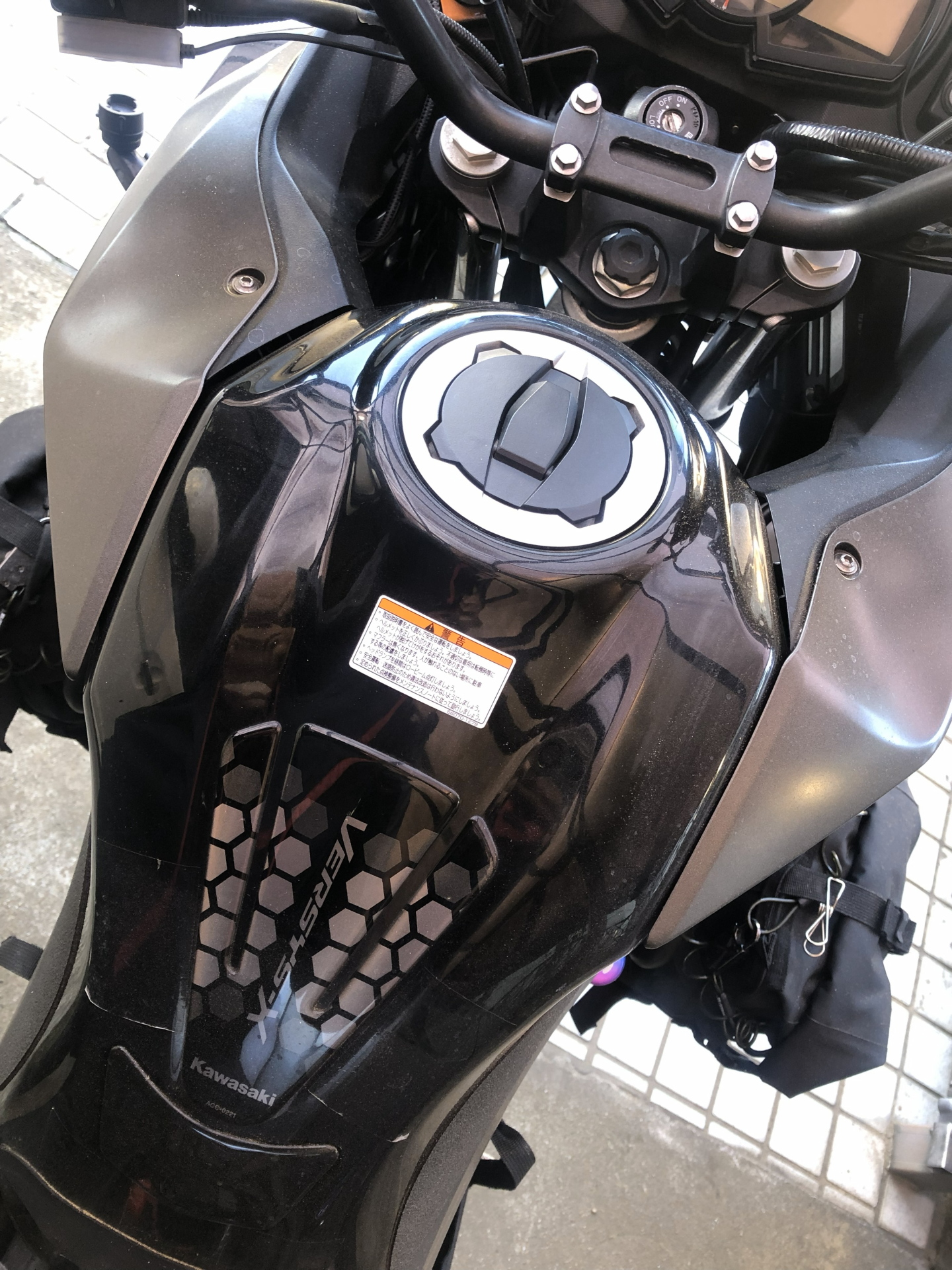 Versys-Xはタンク脇のシュラウドを留めるボルトが非常に深い場所にあります。