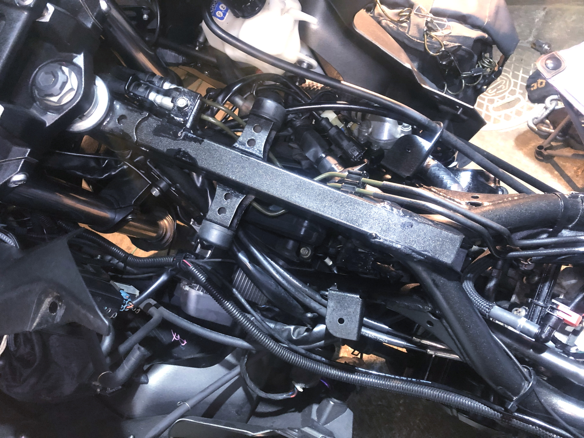 仕方なく周辺のコネクターやブラケットを取り外して隙間を確保しました。