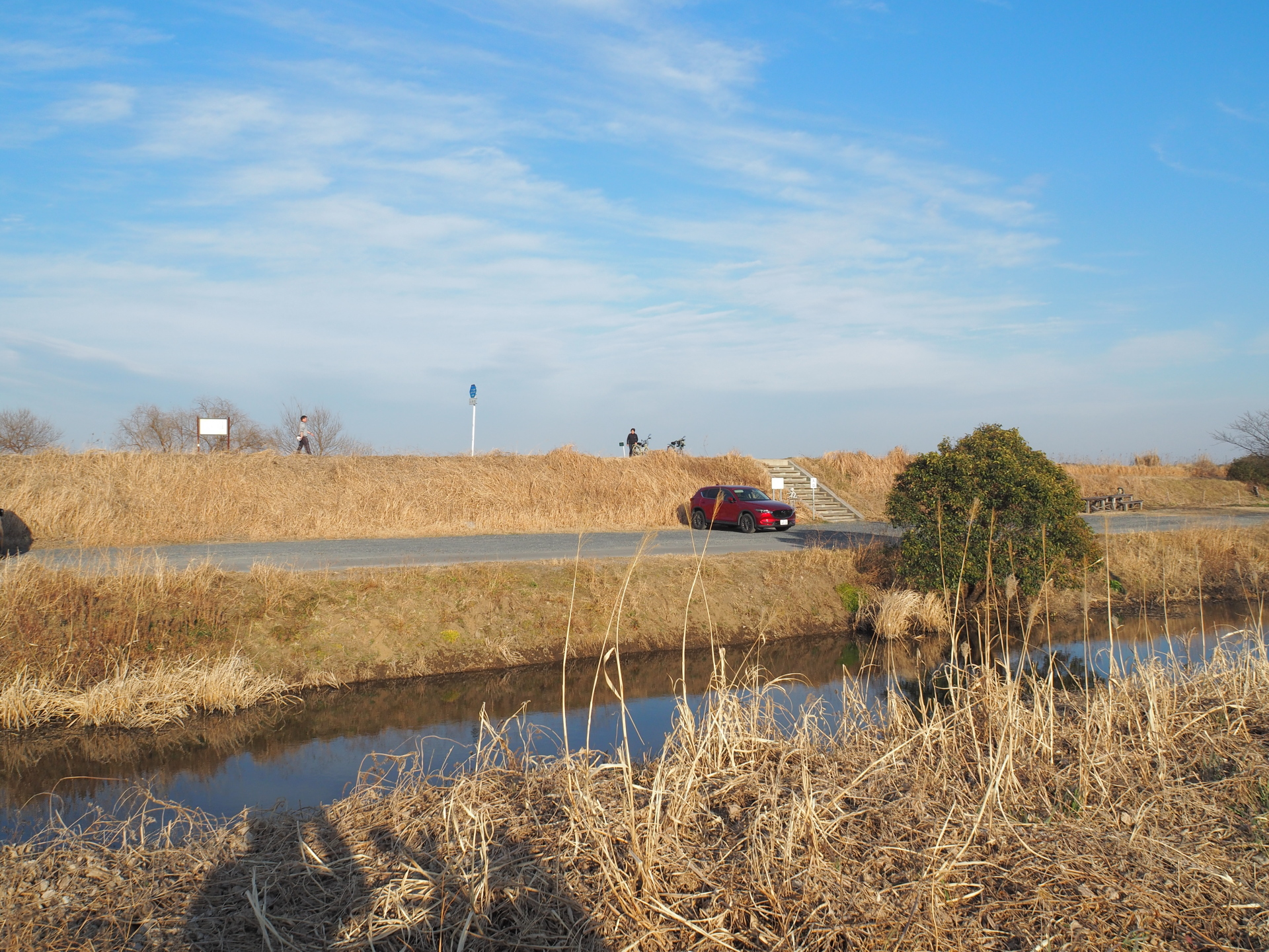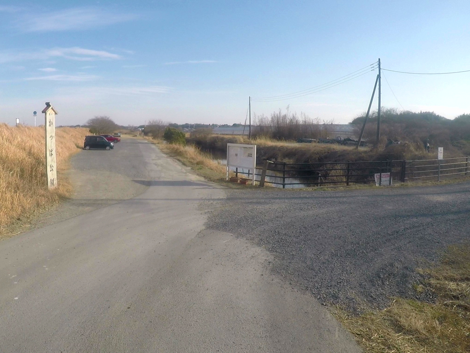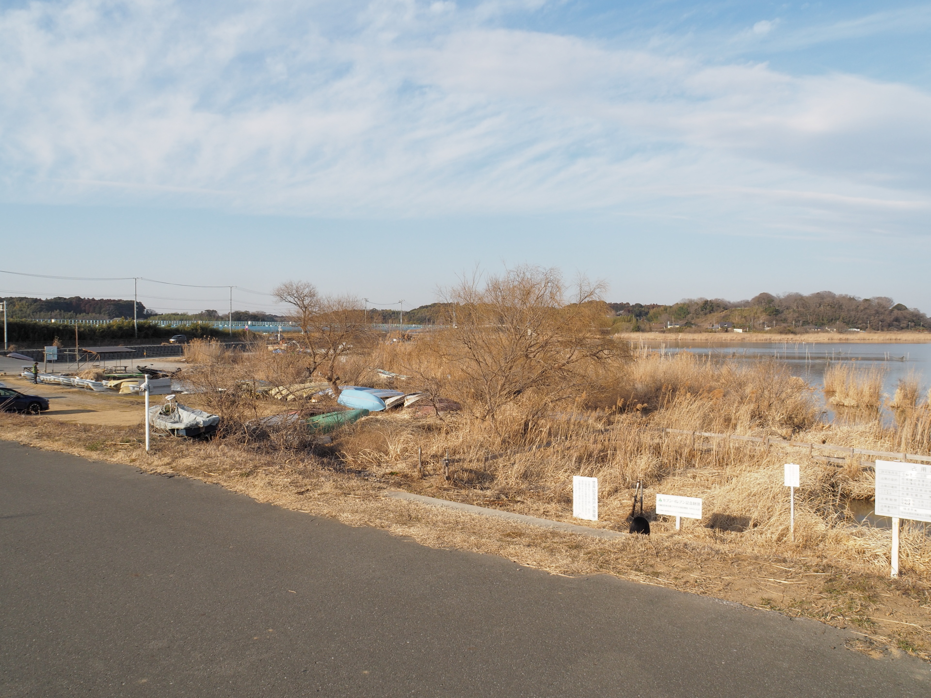 駐車場の脇に見えるのは印旛沼ではなく排水路です。