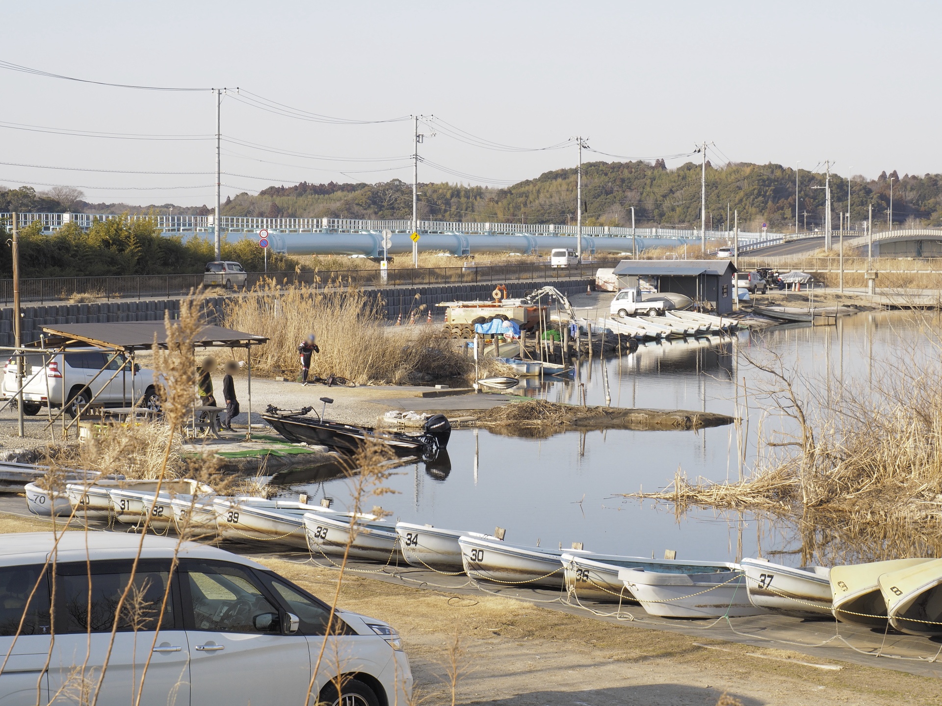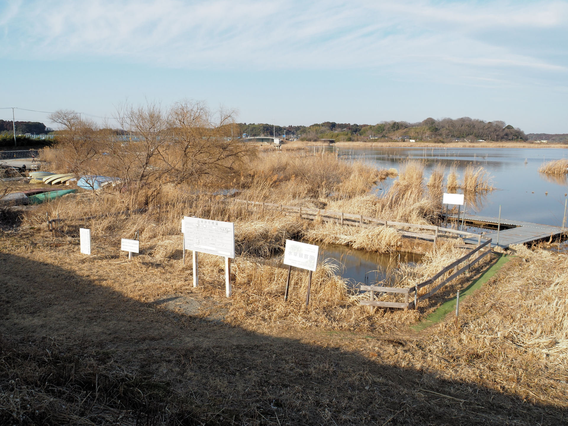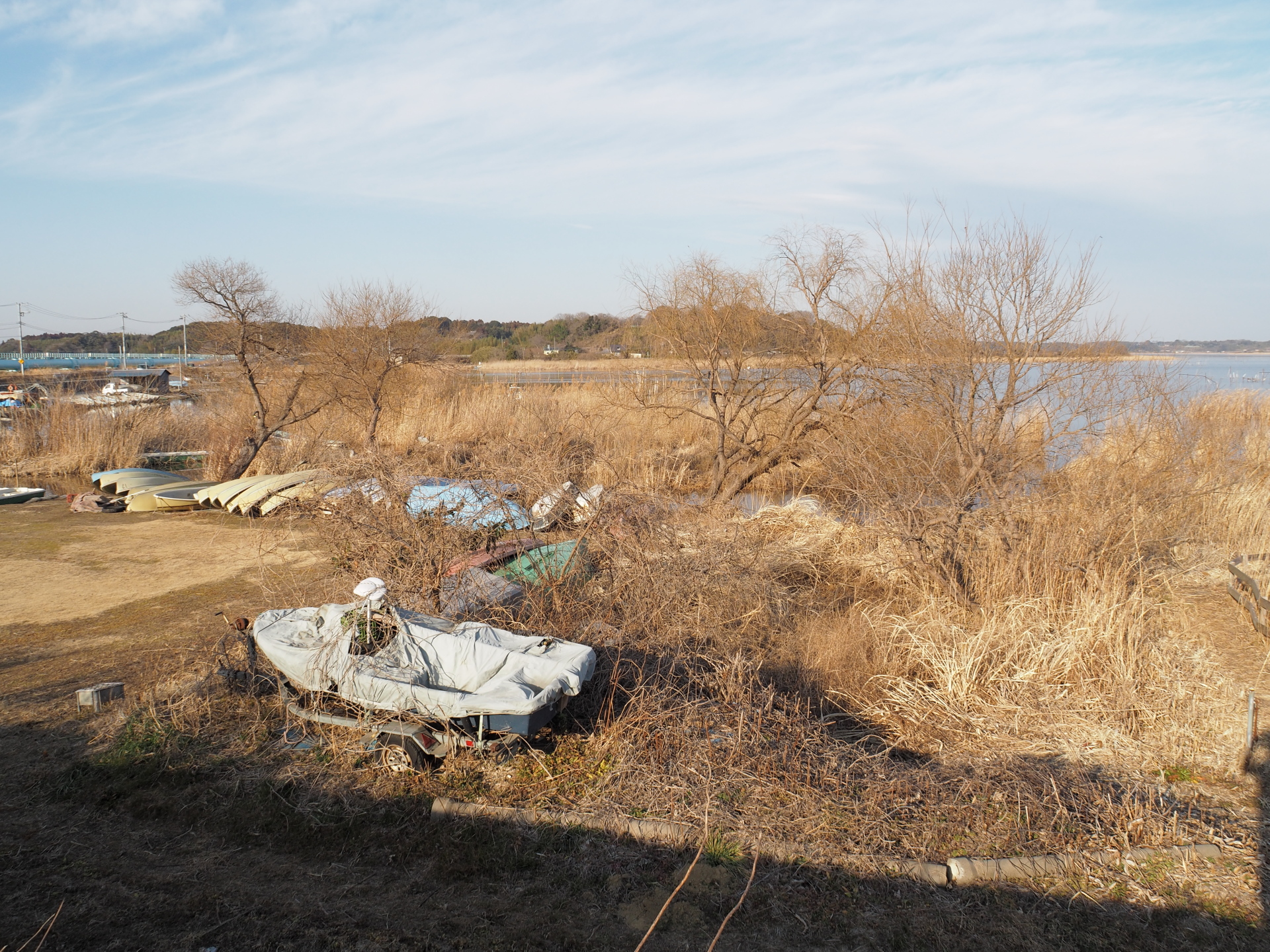 駐車場の脇に見えるのは印旛沼ではなく排水路です。