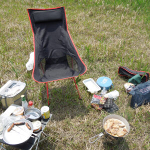 林道口のベンチで弁当食べてたら山の中から子連れの家族が現れて驚きました。